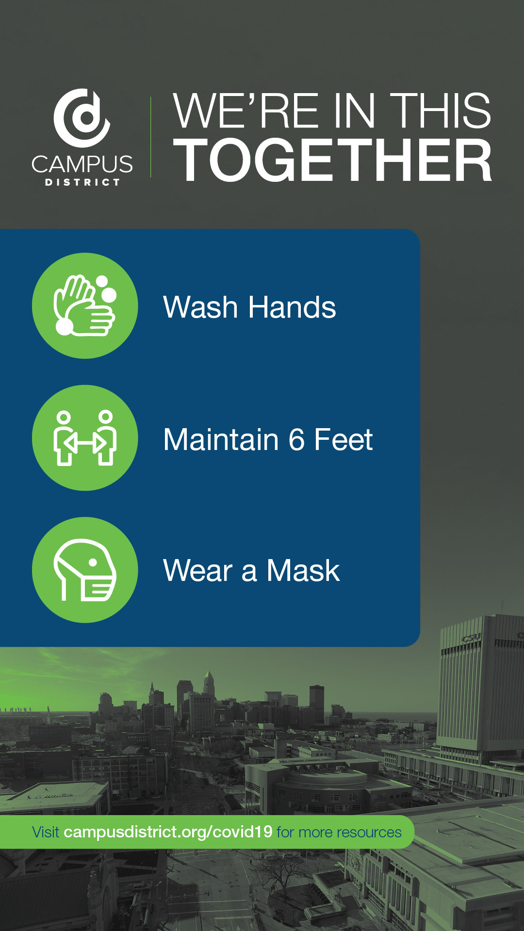 Campus District gives people from all walks of life a place to live, learn, build businesses, produce artistry and access quality care. Founded in 1983 by three of downtown Cleveland’s anchor institutions, they work to create conditions that fuel our vibrant and resilient community.
