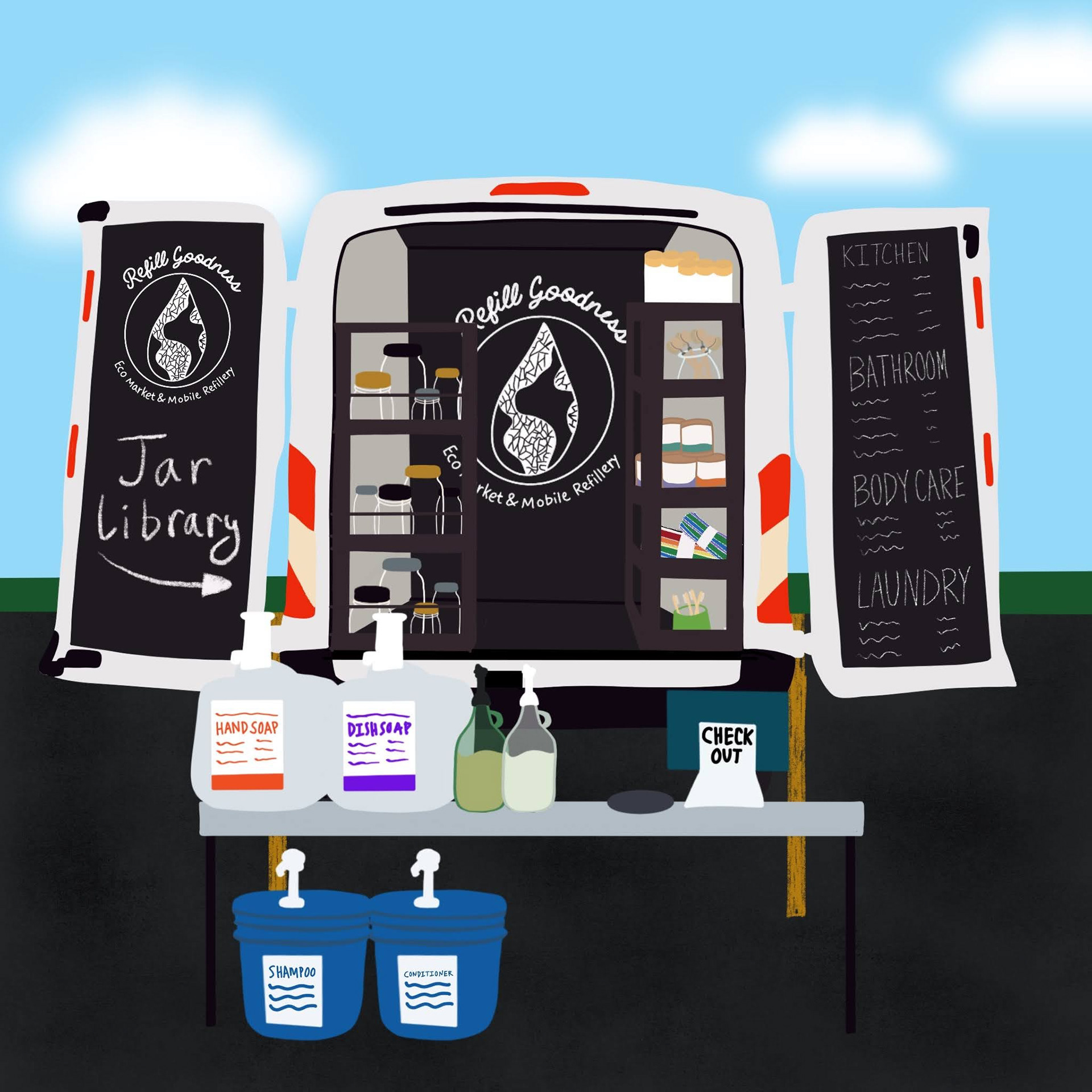Refill Goodness is an eco market and refillery with locations in OH and MD. We offer locally sourced bulk, refillable goodness such as cleaning supplies, DIY staples and beauty products along with low-waste swaps for the home. In 2020, I designed their logo and branding. Since then, I have created illustrations for Refill Goodness to use on social.