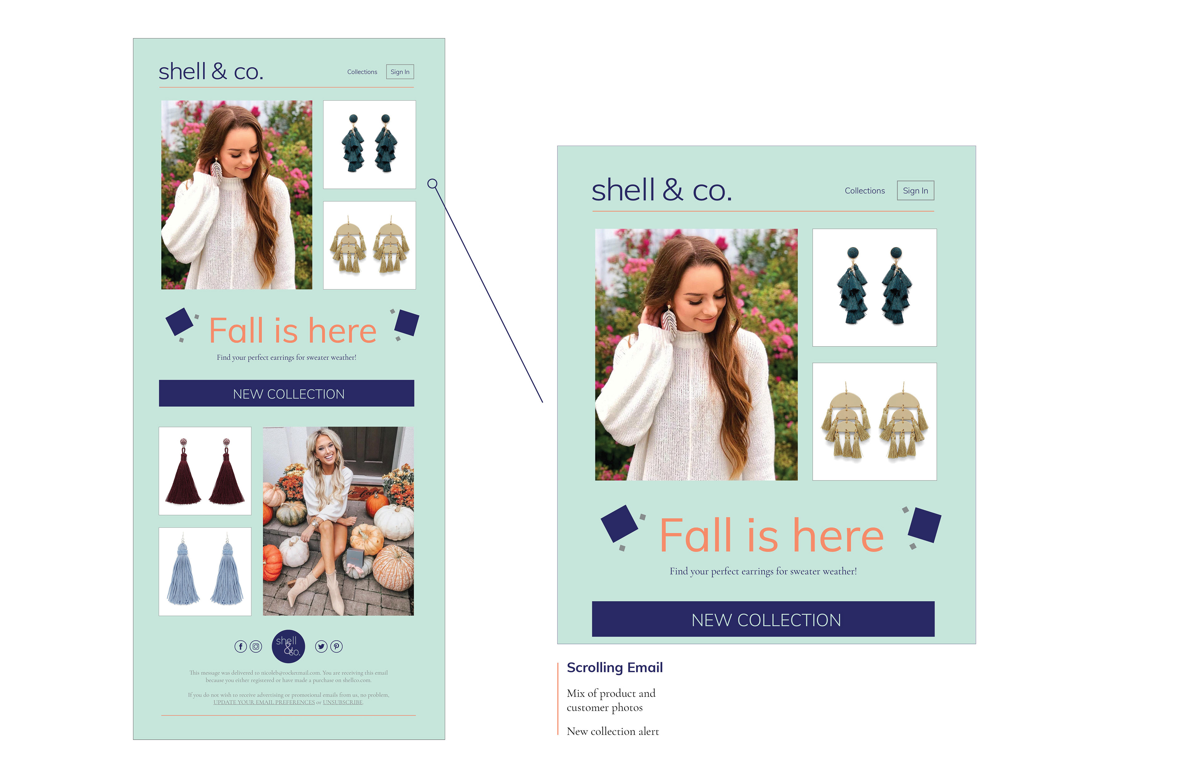 The purpose of this project is to conceive and execute a multi-part campaign for an online niche retailer. I gained experience developing a brand, creating a research plan, and executing a range of interconnected project components. Shell & Co is a personalized earring pack service that exists to make life easier and more stylish. Consumers can curate a pack of earrings through their own wishlist. The service allows the consumer to love the whole pack instead of buying a pack of earrings at a retail store with pairs they will never wear.
